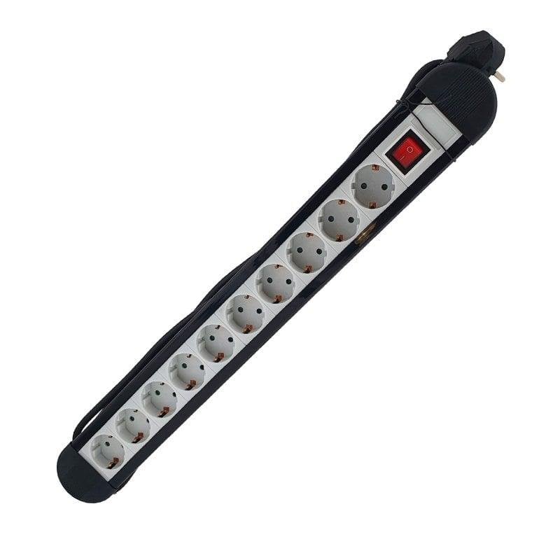 Máximo aprovechamiento y seguridad. Con 10 tomas de corriente, podrás alimentar varios dispositivos a la vez, desde ordenadores y periféricos hasta pequeños electrodomésticos, con total confianza en entornos profesionales y domésticos. Su interruptor de aluminio te permite desconectar todos los dispositivos de manera cómoda, evitando el consumo fantasma y ahorrando energía cada día.