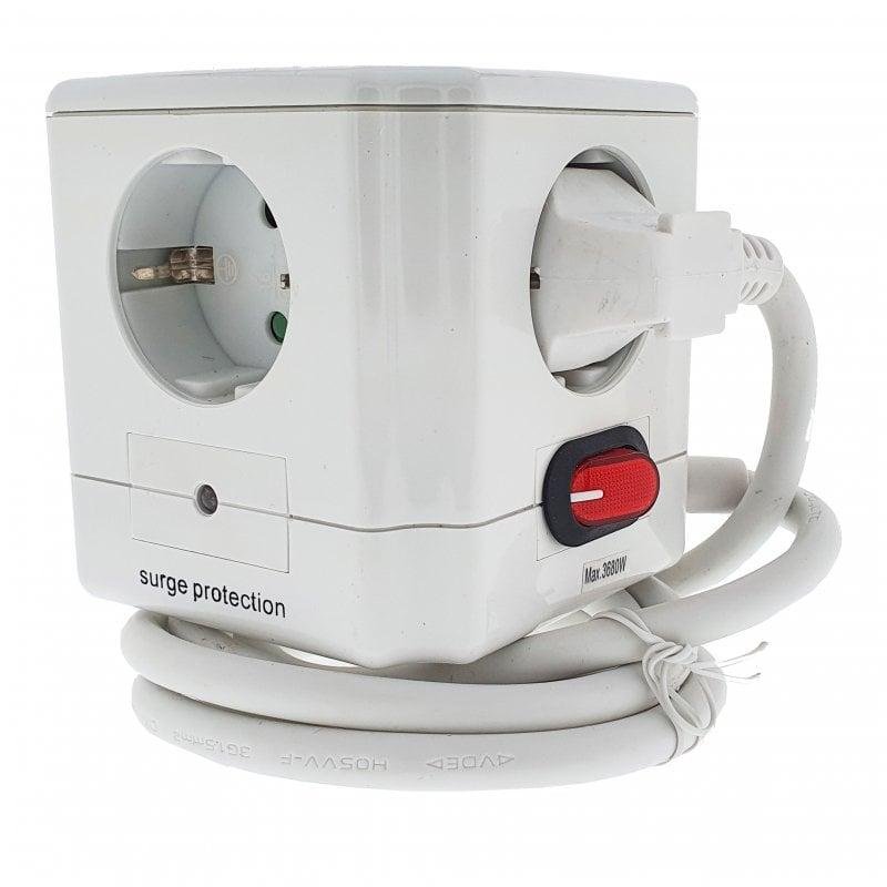Diseño tipo cubo compacto que optimiza el espacio y aporta un toque decorativo a escritorios o zonas de trabajo. Sus 4 tomas de corriente permiten distribuir la energía a varios equipos a la vez sin sobrecargar las instalaciones.