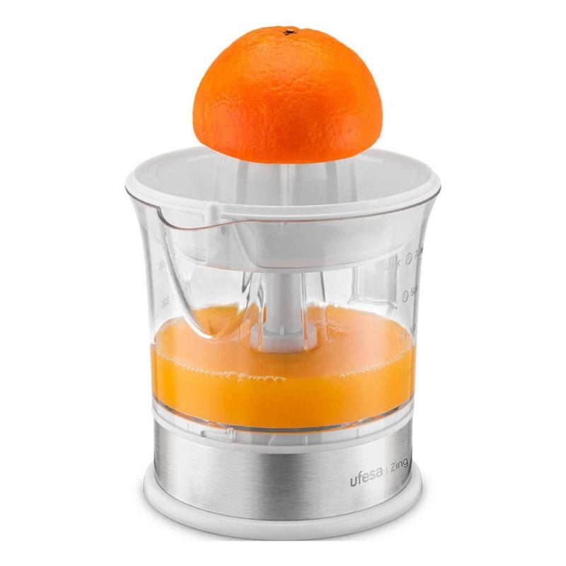 Obtén jugos frescos y naturales en segundos con el exprimidor eléctrico Ufesa Zing, potente y de diseño elegante para cualquier momento del día.
