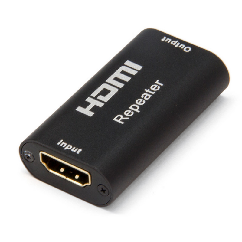 Extensor repetidor de señal HDMI. Dispone de entrada hembra HDMI y salida hembra HDMI. Te permite transmitir la señal en calidad 1080p sin pérdida apreciable hasta 40 metros de distancia. (Resoluciones menores pueden transmitirse a mayor distancia) Ligero, compacto y muy sencillo de utilizar, no requiere de instalación previa.