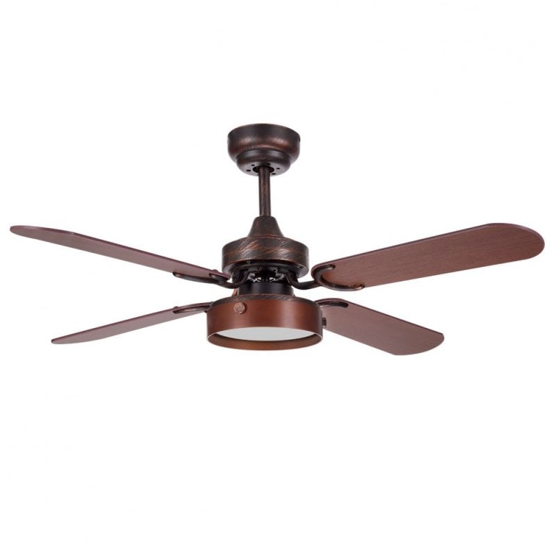 - Realizado en acero, madera MDF y policarbonato en color marrón rústico con cuatro aspas reversibles Nogal/Cerezo.