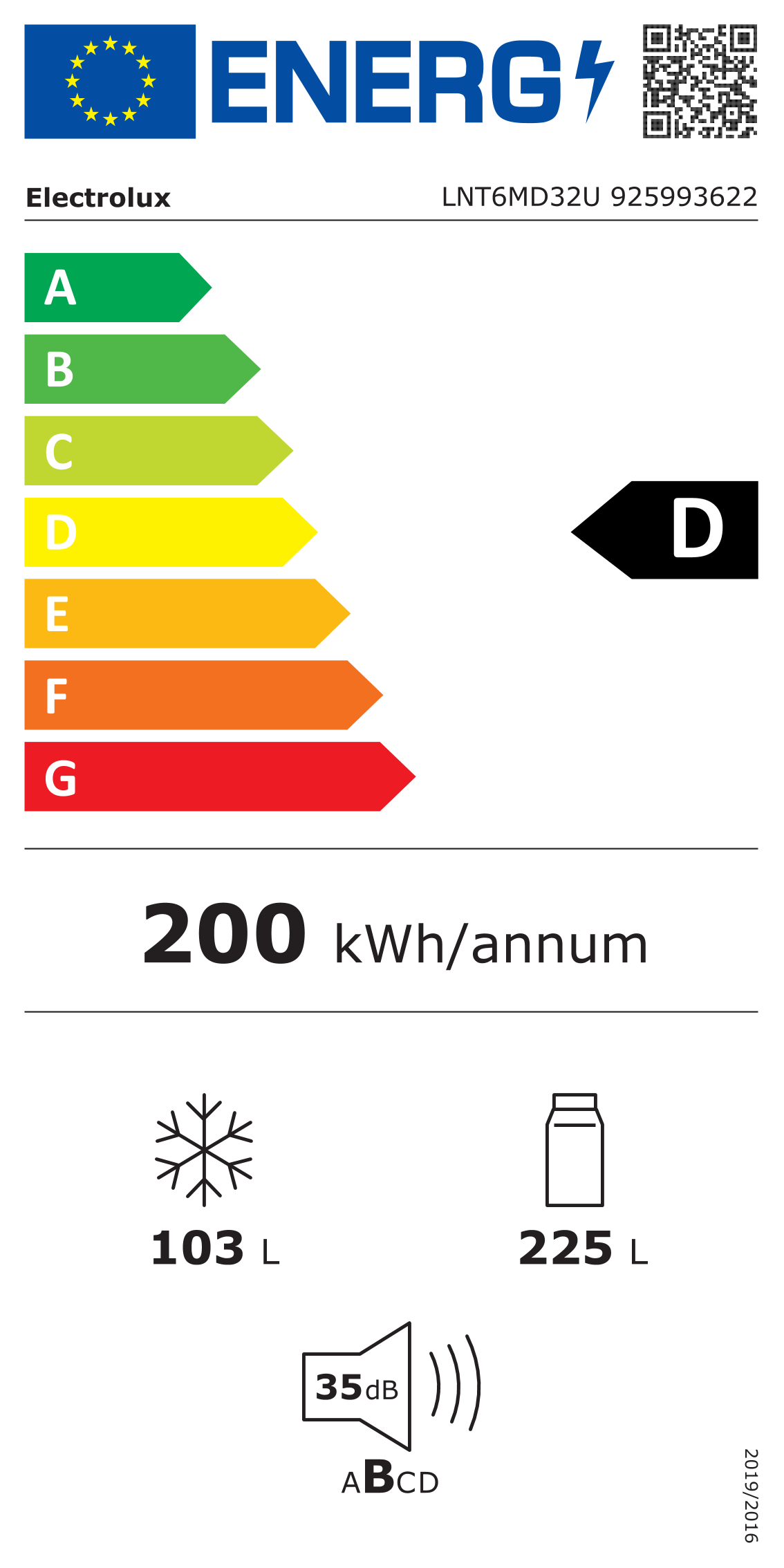 Silencioso y eficiente: Clase de emisión de ruido B (solo 35 dB) y eficiencia energética D, pensados para hogares exigentes que quieren máximo rendimiento con bajo consumo.