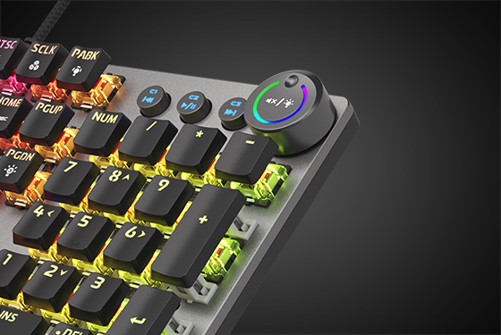 - Tiene opciones de personalización infinitas, responde rápido y es cómodo de usar. Además, tiene 3 teclas para controlar la reproducción multimedia y una rueda de volumen y control de efectos de iluminación e intensidad
