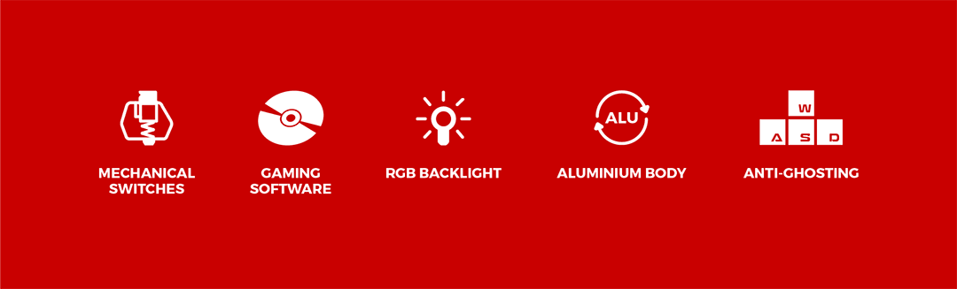 El teclado está equipado con la función N-Key Rollover, también conocida como Anti-Ghosting para todas las teclas. Gracias a ella, no importa cuántas teclas se pulsen, el dispositivo lee cada pulsación y envía instantáneamente una señal del teclado al ordenador. Thor 400 RGB también cuenta con la función de bloqueo de teclas de Windows para evitar minimizar el juego accidentalmente.