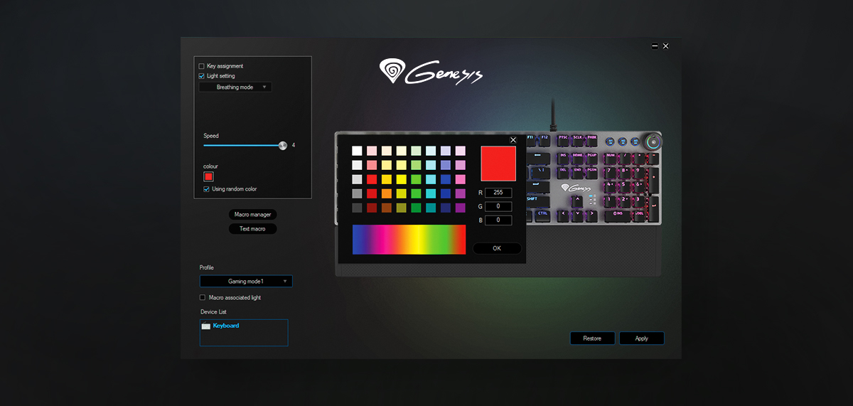 Thor 400 RGB funciona con un software dedicado que permite personalizar totalmente la configuración del dispositivo. Selecciona el modo de iluminación RGB que más interese, crear combinaciones increíbles, configurar macros y perfiles. Toma el control del teclado y no dejes que tus rivales te sorprendan.
