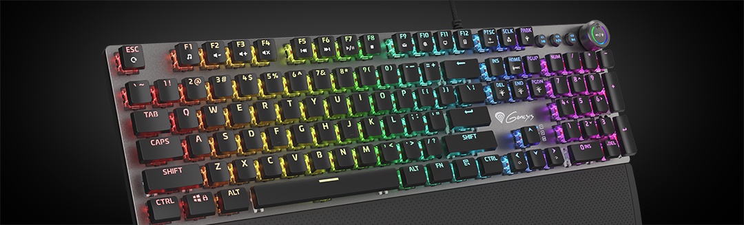 Thor 400 RGB dispone de 12 teclas multimedia situadas en los botones F1 - F12, que permiten gestionar música y abrir cómodamente aplicaciones como son la calculadora o el correo. Además, el teclado está equipado con un innovador botón de función integrado, gracias al cual controlar el volumen y el brillo de la retroiluminación es aún más cómodo y rápido.