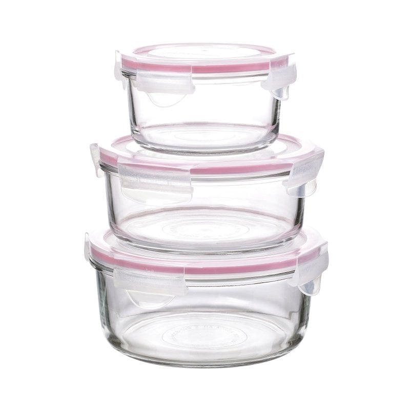 Glasslock Classic - Set De 3 Recipientes Herméticos Redondos En Vidrio Templado