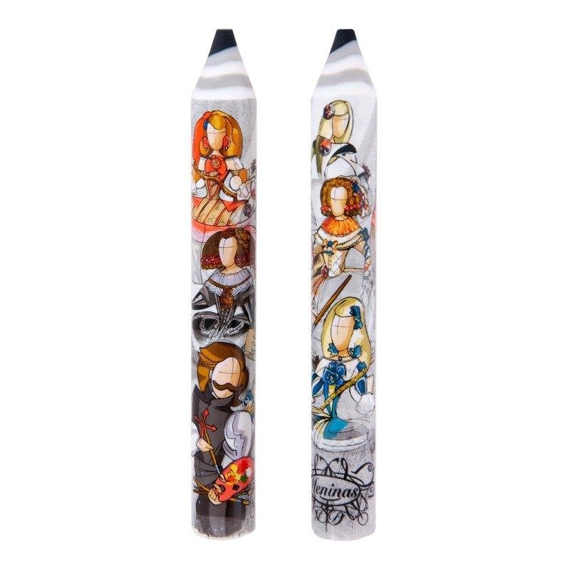 Consigue un borrado preciso y divertido con estas gomas de borrar de formato lápiz, decoradas con motivos flamencos inspirados en Las Meninas.