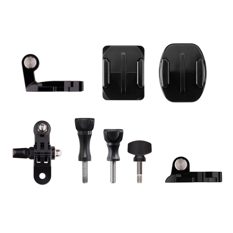 Te presentamos este kit de soportes y repuestos. Incluye montajes adhesivos curvos y planos, dos hebillas de montaje, un brazo pivotante de 3 vías, además de una variedad de tornillos de pulgar corto y largo.