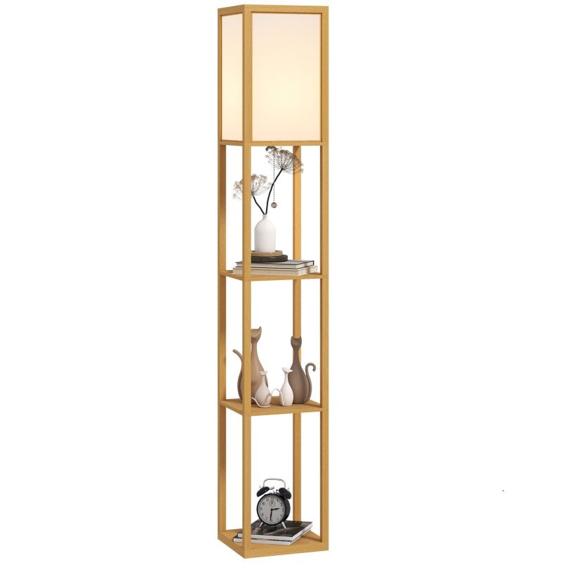 - Lámpara de pie con estantería incorporada de 3 baldas para almacenar objetos pequeños