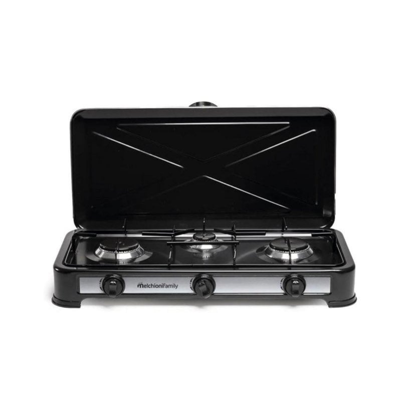 Hornillo a gas Melchioni Family Minerva New 3 portátil 3 quemadores exterior negro
