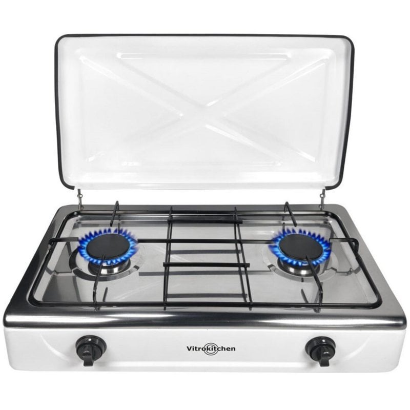 Hornillo a gas Vitrokitchen 202BB 2 quemadores Butano Blanco y Negro Aluminio Pulido