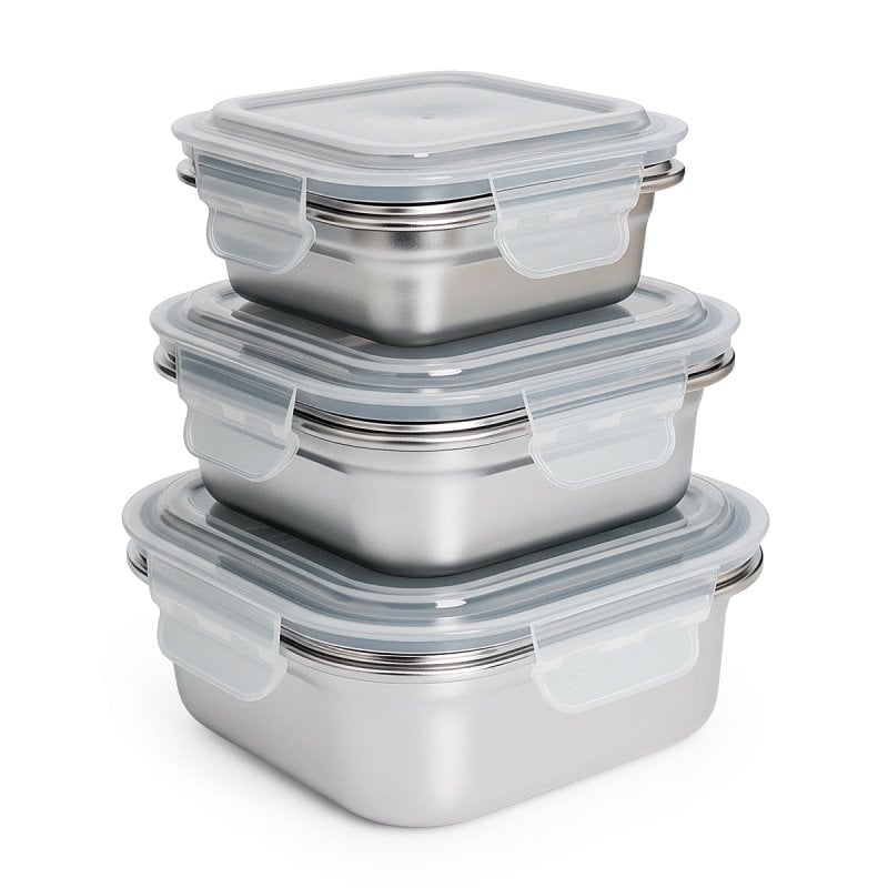 Sé el primero en opinarLote de 3 Recipientes Cuadrados IBILI Keepklin fabricados en acero inoxidable 18/10 especial y con tapa de polipropileno, especialmente resistentes a la oxidación y las bacterias, aptos para microondas. Higiénicos, no transmite olores ni sabores a los alimentos. Fácilmente apilables y encajables entre sí en algunos formatos, ahorran espacio en tu cocina.
