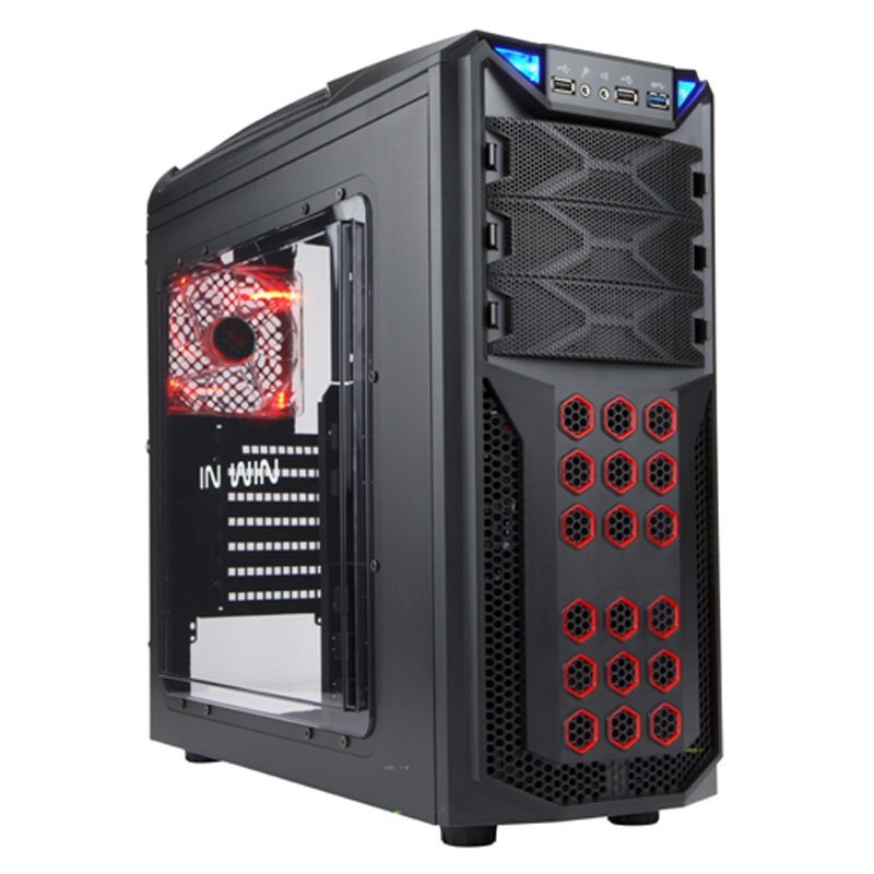 In Win GT1 es una caja semitorre de diseño gaming con un acabado exterior de color negro e iluminación interior de color rojo. Incluye lateral con ventana.