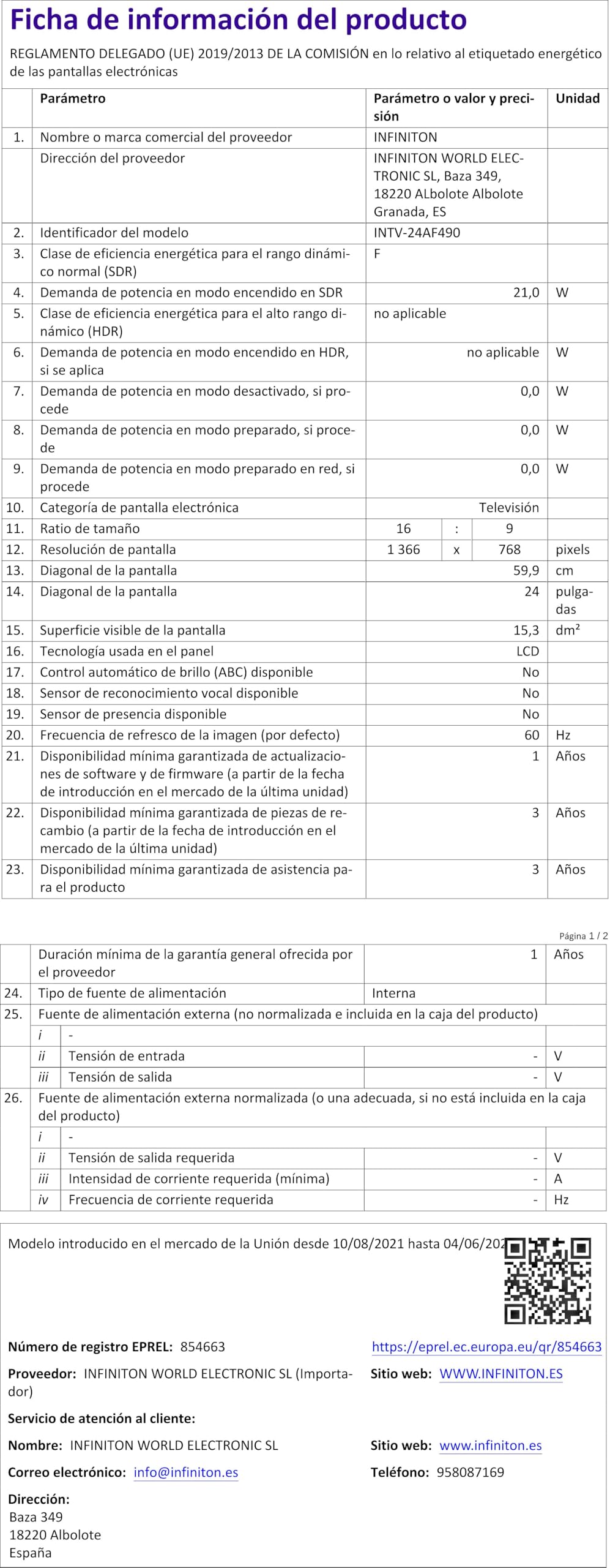 La televisión INTV-24L200 Infiniton ofrece muchas prestaciones. Podrás disfrutar de una gran calidad de imagen porque tiene una Resolución HD Ready (1366 x 768p).