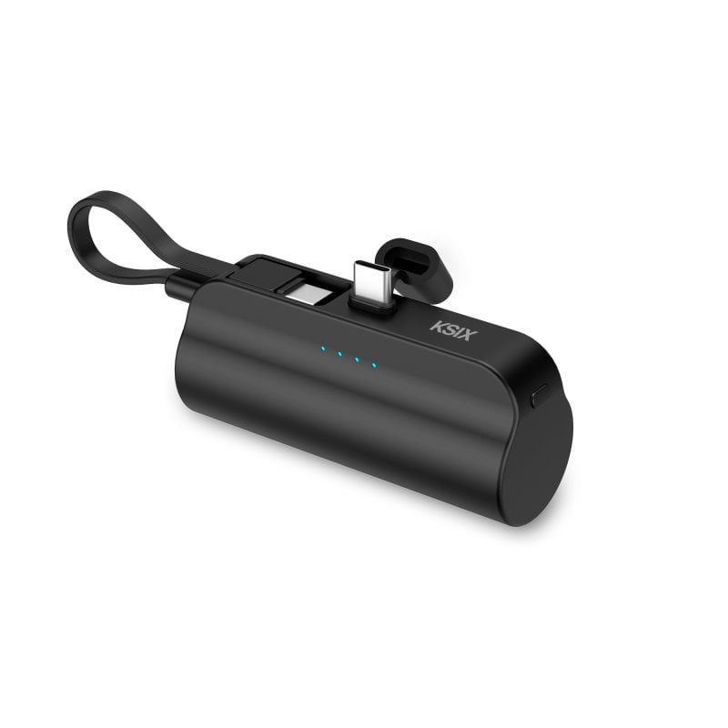 Ksix 5.000 Mah Power Bank De Bolsillo, Cable Y Soporte Integrado, Cable Usb-c A Usb-c, Indicadores Led, Negro