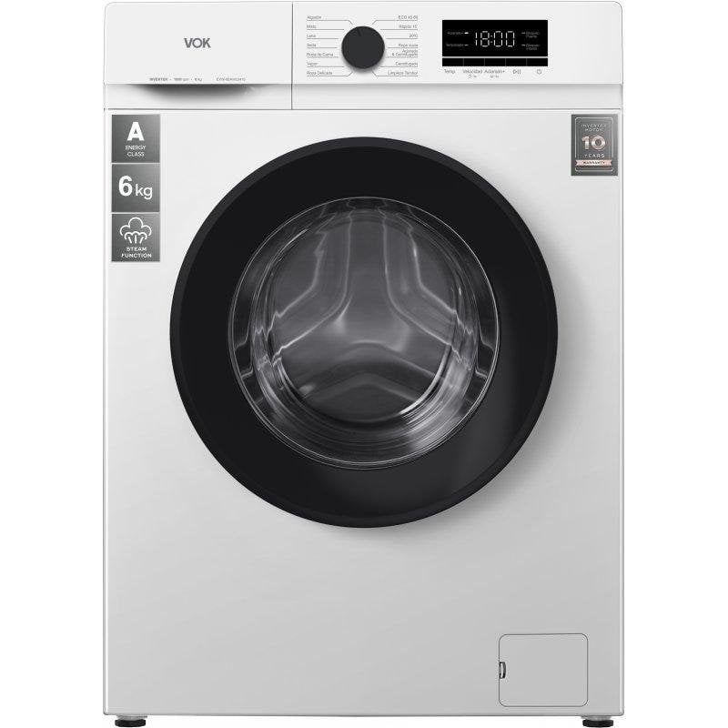 Lavadora VOK EVW-6BAWL2410 Carga Frontal 6 kg 1000 rpm A Blanca Motor Inverter Vapor
