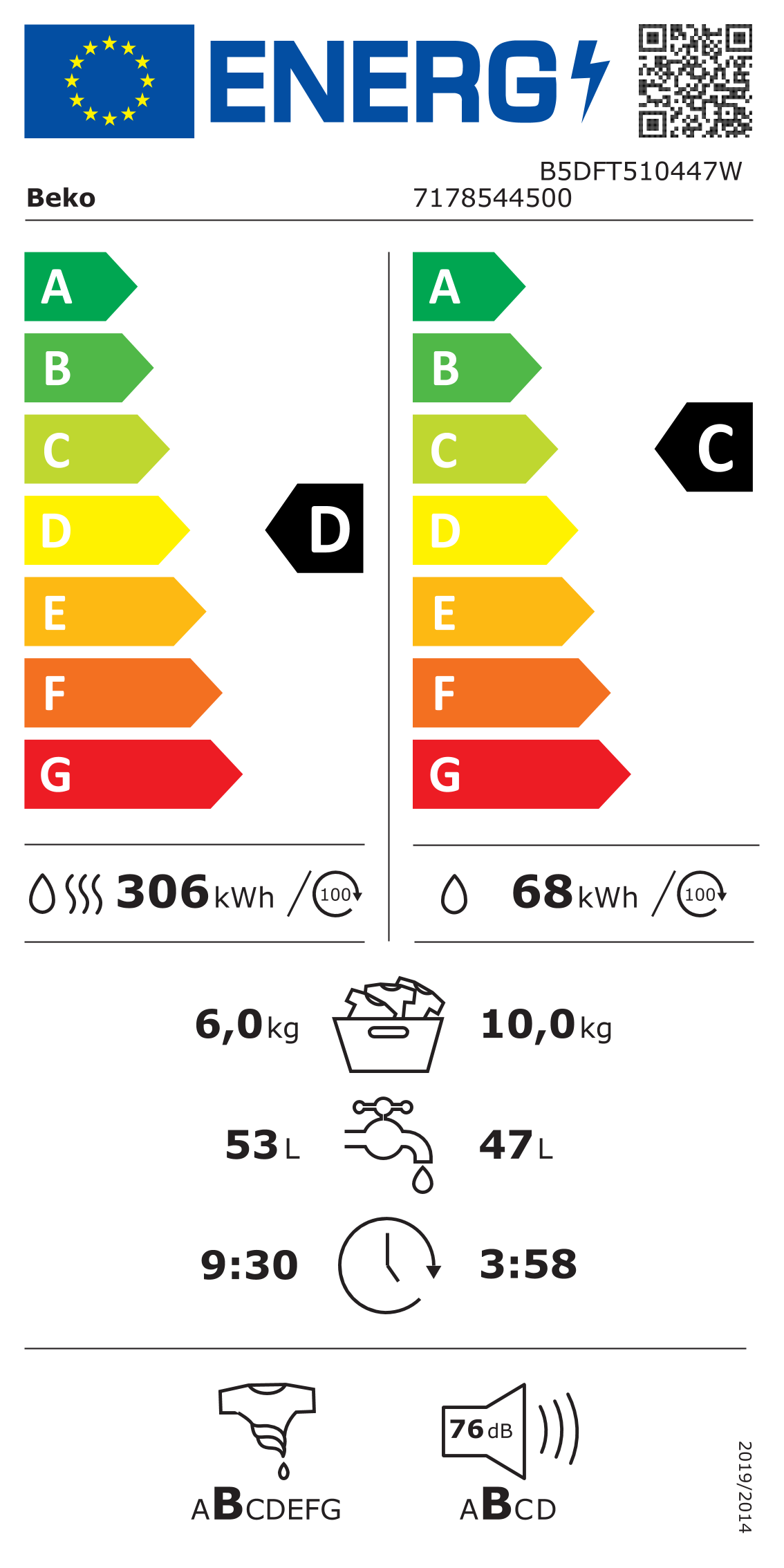Especificaciones Lavasecadora Beko 10 kg D B5DFT510447W