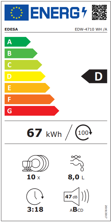 Especificaciones Lavavajillas Edesa EDW-4710 WH