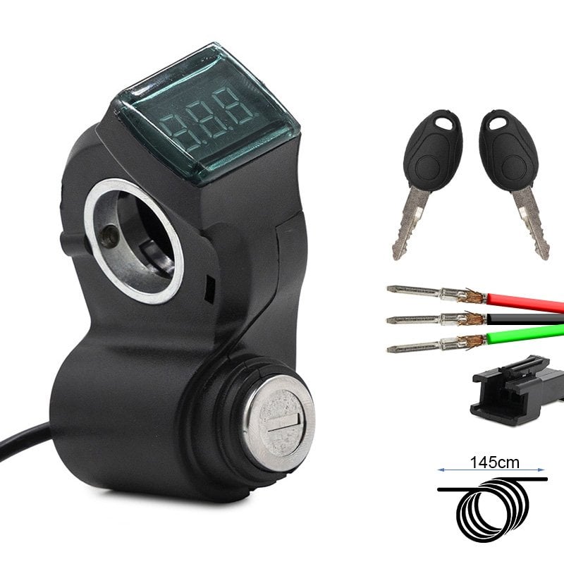 Llave de contacto con voltímetro te proporciona un control seguro y un medio para medir el voltaje. Este producto incluye un cable largo de 1,5 metros con conector SM 3P, lo que lo convierte en una solución versátil para múltiples modelos de patinetes. El voltímetro incorporado te permite supervisar la carga de la batería de tu patinete con facilidad, garantizando que siempre estés al tanto de su estado. Revisar las conexiones del conector antes de la instalación, todas las características están en la imagen del producto.