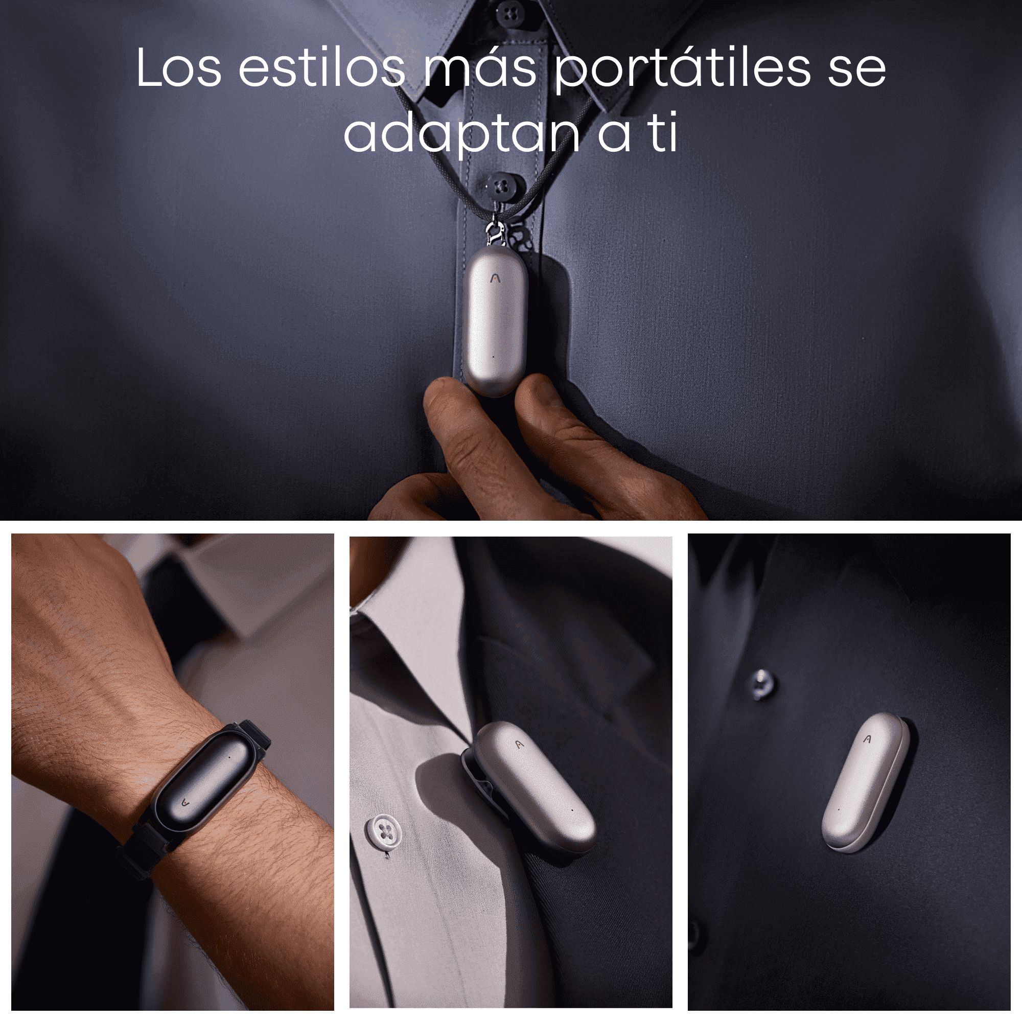 - Diseño ultracompacto: Se engancha a la ropa como un pin normal