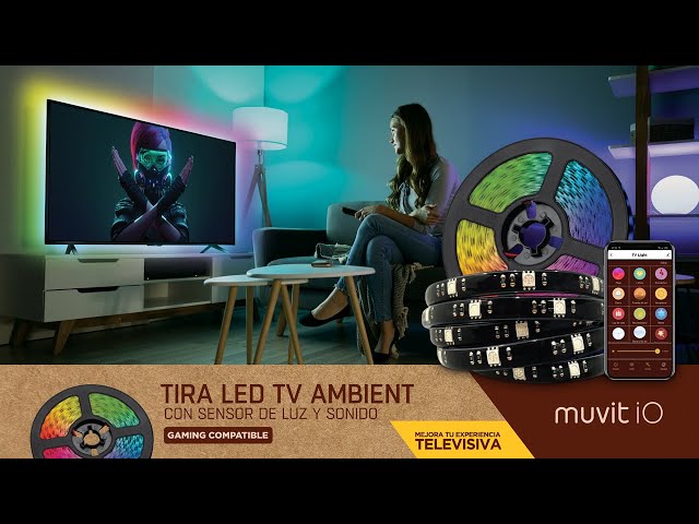 Mejora la experiencia televisiva con la tira LED TV Ambient de muvit iO. Compatible tanto para TV como para monitores de PC Gaming. Mediante el modo de detección de color del sensor de luz, la tira LED reproducirá automáticamente los colores captados en la pantalla. Descubre una experiencia envolvente de millones de colores, cuando veas tu película favorita, o cuando estés jugando online.