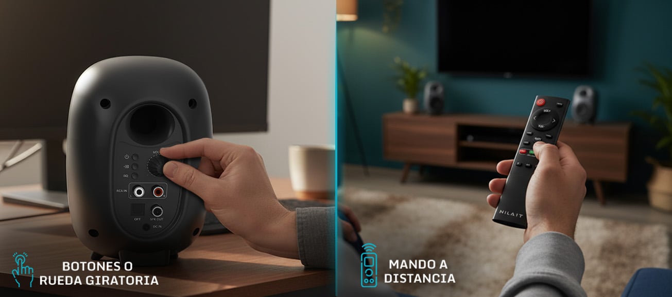 - Control versátil mediante mando a distancia, botones en el panel o rueda giratoria, según tu preferencia