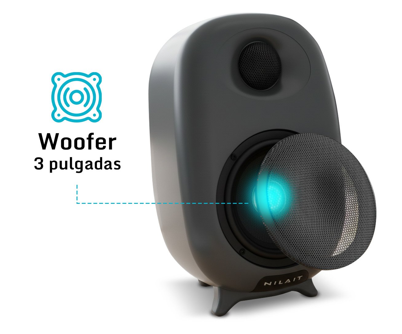 Cada altavoz incorpora un woofer de 3 pulgadas, diseñado para ofrecer graves profundos y contundentes. Esto aporta un cuerpo y una riqueza inigualables a tu música, haciendo que cada nota de bajo se sienta con gran presencia y claridad.