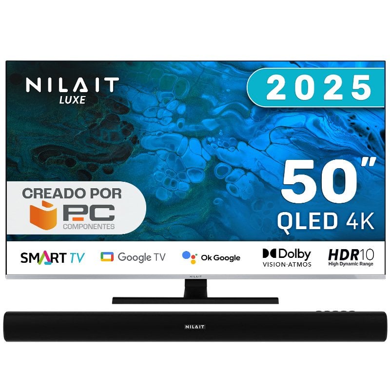 Nilait Luxe 50"UC8003S QLED UHD 4K Smart TV + Nilait Harmony Sound bar Barra de Sonido Bluetooth 2.0 30W