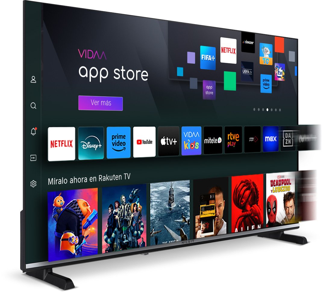 - Smart TV con sistema operativo VIDAA. Gracias al intuitivo sistema VIDAA, accede a tus aplicaciones favoritas como Netflix, YouTube y muchas más, de forma rápida y personalizada. Navega con fluidez y convierte tu TV en el centro inteligente de tu hogar. Y si lo prefieres, contrólalo por voz a través de la app VIDAA: cambia de canal, busca contenido o ajusta el volumen simplemente hablándole.
