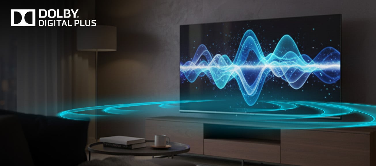 Con Dolby Digital Plus, el audio se vuelve tridimensional y envolvente. Cada diálogo, efecto y nota se escucha con claridad y profundidad, haciendo que te sientas dentro de la película, serie o juego como si estuvieras en la escena
