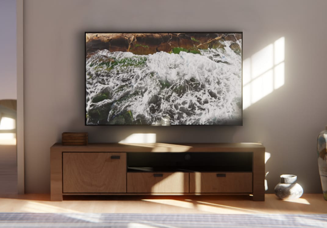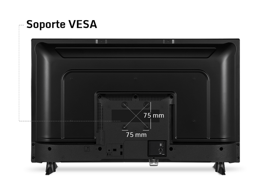 - Diseño minimalista y elegante. Queda como un guante allí dónde la pongas. Gracias a su peana lateral plana, podrás colocar tu televisión hasta en los huecos más estrechos. Y si lo prefieres, cuélgala con un soporte VESA compatible.