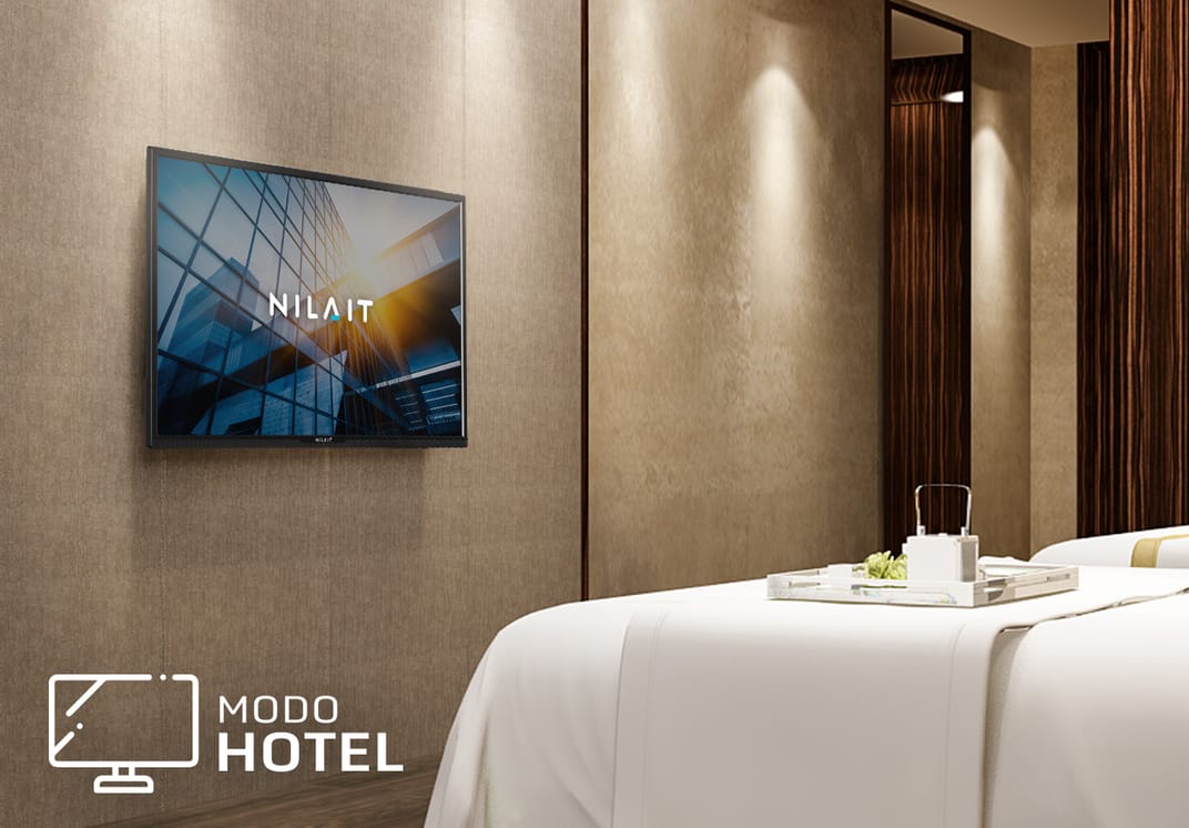 - Modo Hotel incorporado: ¿Tienes un negocio y te preocupa que tus clientes no hagan buen uso del televisor? ¡No te preocupes porque hemos pensado en ti! La televisión incorpora modo hotel por lo que podrás programar volumen máximo, fijar la lista de canales o simplemente establecer restricciones en la configuración de la televisión. Y si lo que deseas es darles una cálida bienvenida podrás grabar el mensaje que más te guste.