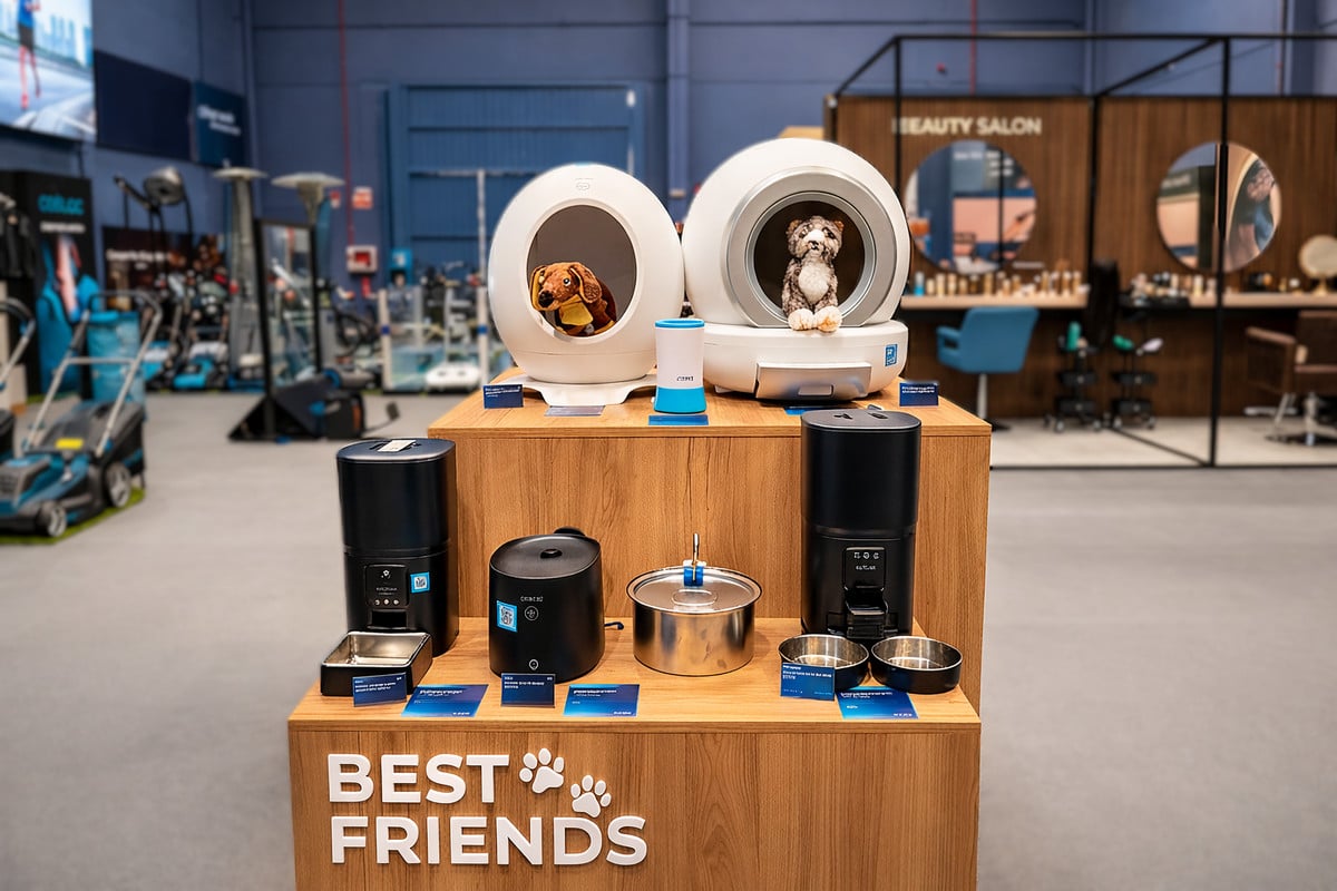 Una de las novedades más llamativas es el spa para mascotas, un producto aún sin lanzamiento comercial pero que ya se pudo ver en el showroom. Tiene un diseño circular en forma de huevo, con una cama que es tanto refrigerante como calefactable para adaptarse a la estación del año. Además, incorpora un altavoz integrado para reproducir música, pensado para calmar a la mascota en momentos de estrés. Es una apuesta clara por el bienestar animal llevado a otro nivel.