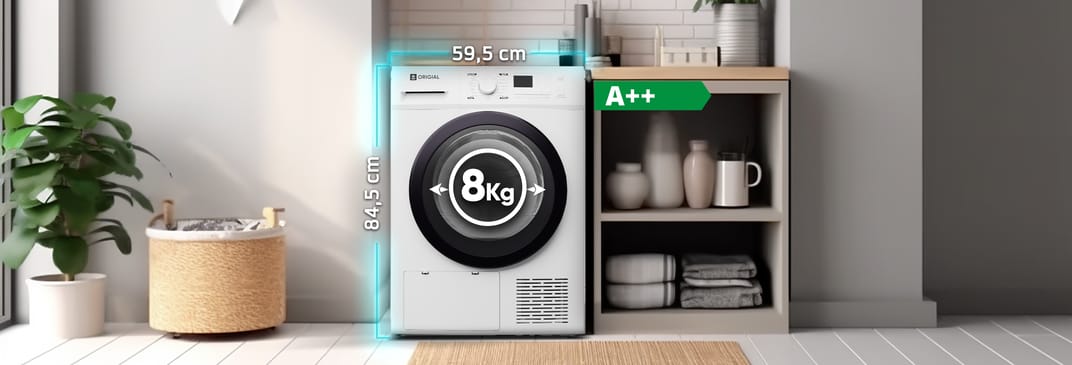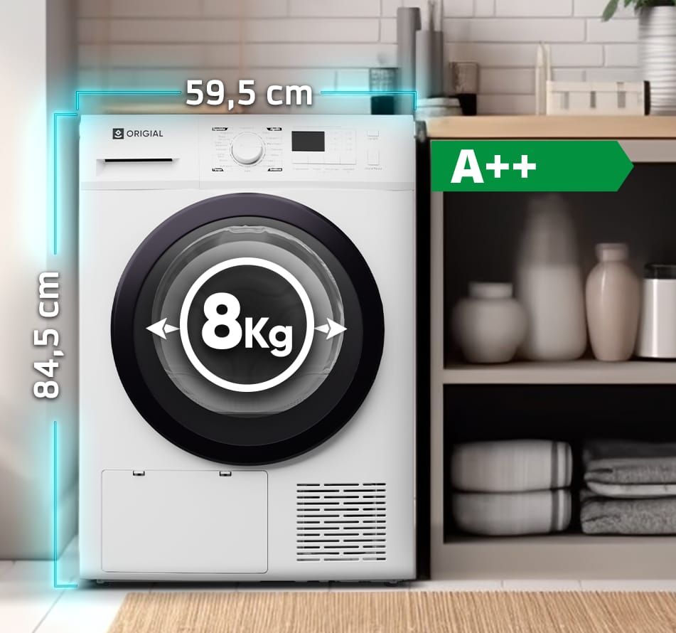 Presentamos la secadora ORIDRY8AW de la marca Origial, que incorpora las últimas tecnologías del mercado para cuidar como se merece tu ropa y la de los tuyos. Bomba de calor, clase energética A++, programas especiales para cada tejido, diseño smart… son algunos privilegios con los que contarás si te has decidido por este modelo.