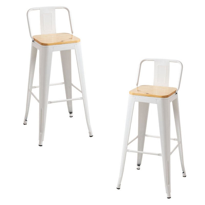 Packs Taburetes Altos - Pack 2 Taburetes Torix Respaldo Madera Natural - Blanco