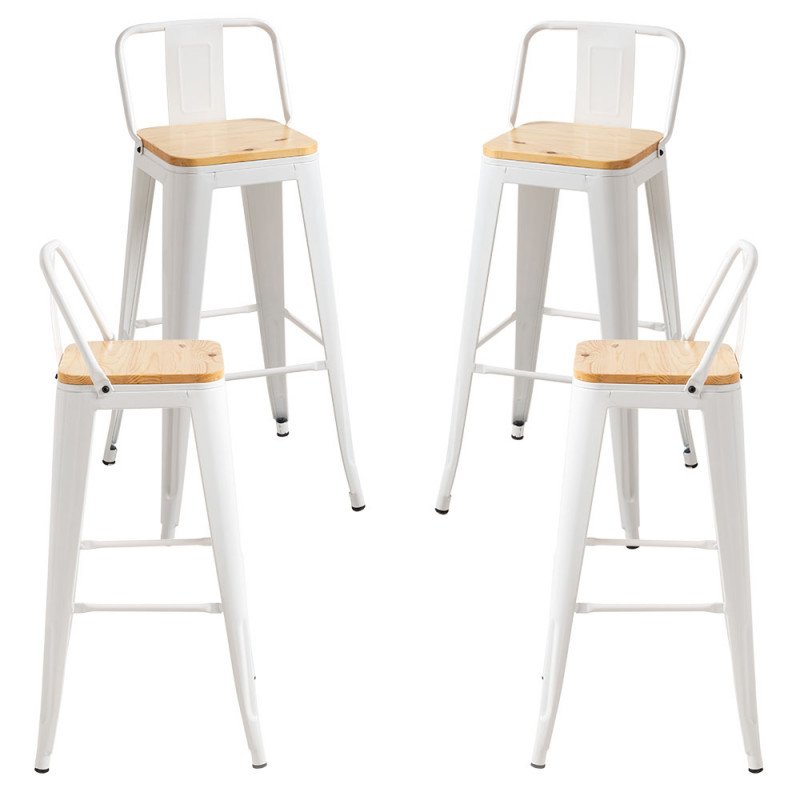 Packs Taburetes Altos - Pack 4 Taburetes Torix Respaldo Madera Natural - Blanco