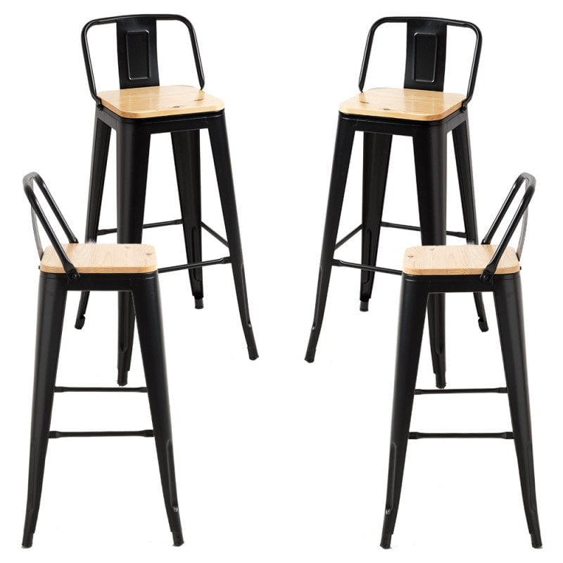 Packs Taburetes Altos - Pack 4 Taburetes Torix Respaldo Madera Natural - Negro