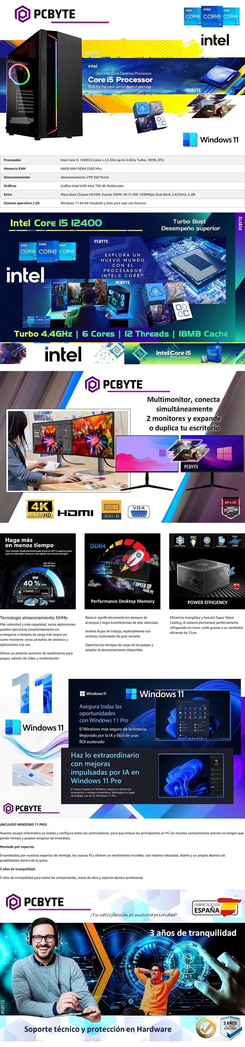PCBYTE Katyusha Pc Intel Core i5-12400/64GB/2TB SSD