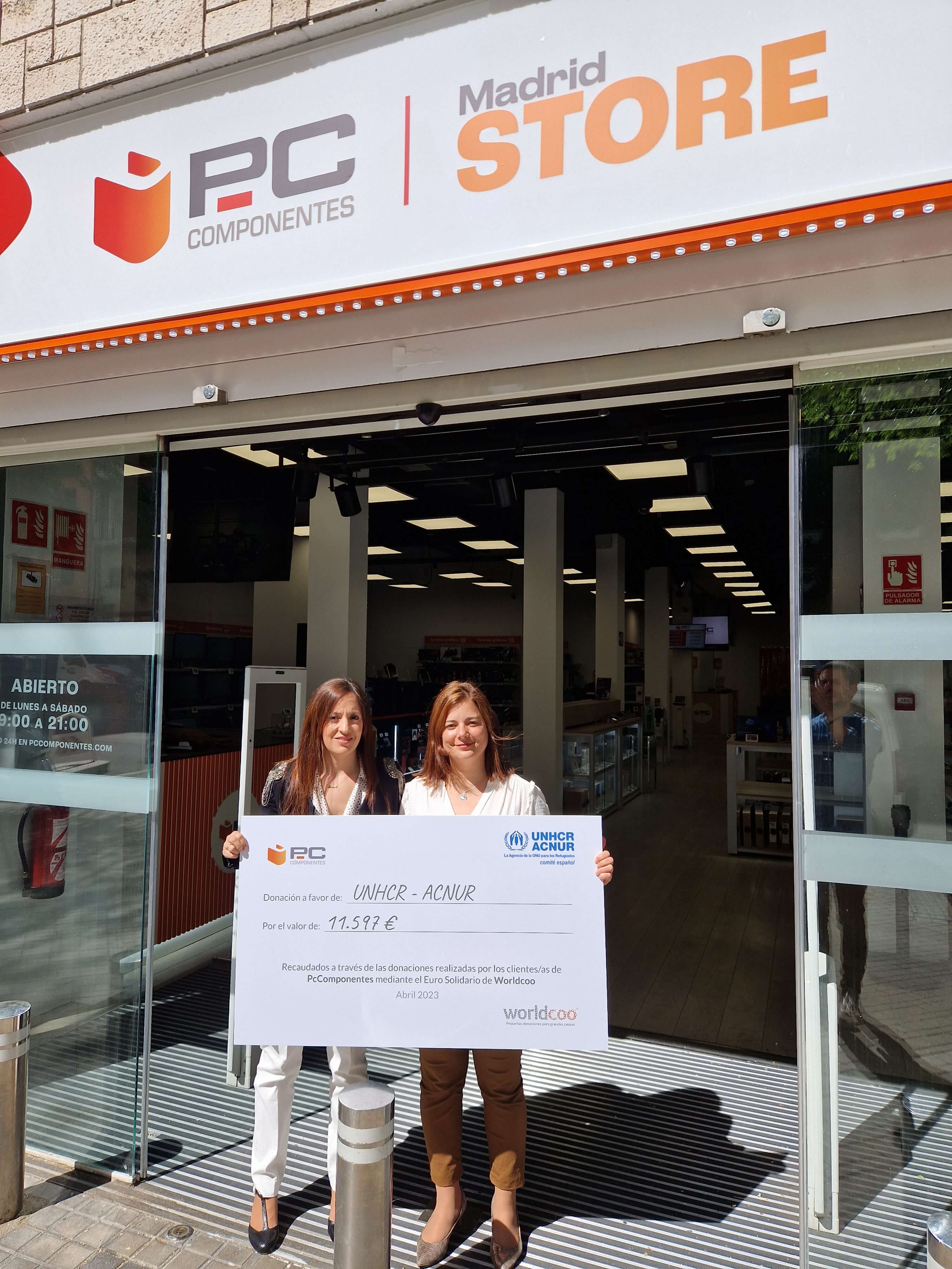 La entrega de esta suma económica se realizó en la PcComponentes Madrid Store, con la presencia de Alicia Vicente, Brand & Communications Manager de PcComponentes; Borja Goizueta, representante de Worldcoo, y Arancha Almela, especialista en Alianzas Estratégicas del Comité español de ACNUR.