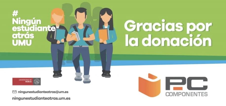 PcComponentes se ha sumado a la iniciativa solidaria de la Universidad de Murcia #NingúnestudianteatrásUMU con una donación destinada a cubrir los gastos de aquellos estudiantes que han quedado en situación de vulnerabiliad debido a la crisis sanitaria.