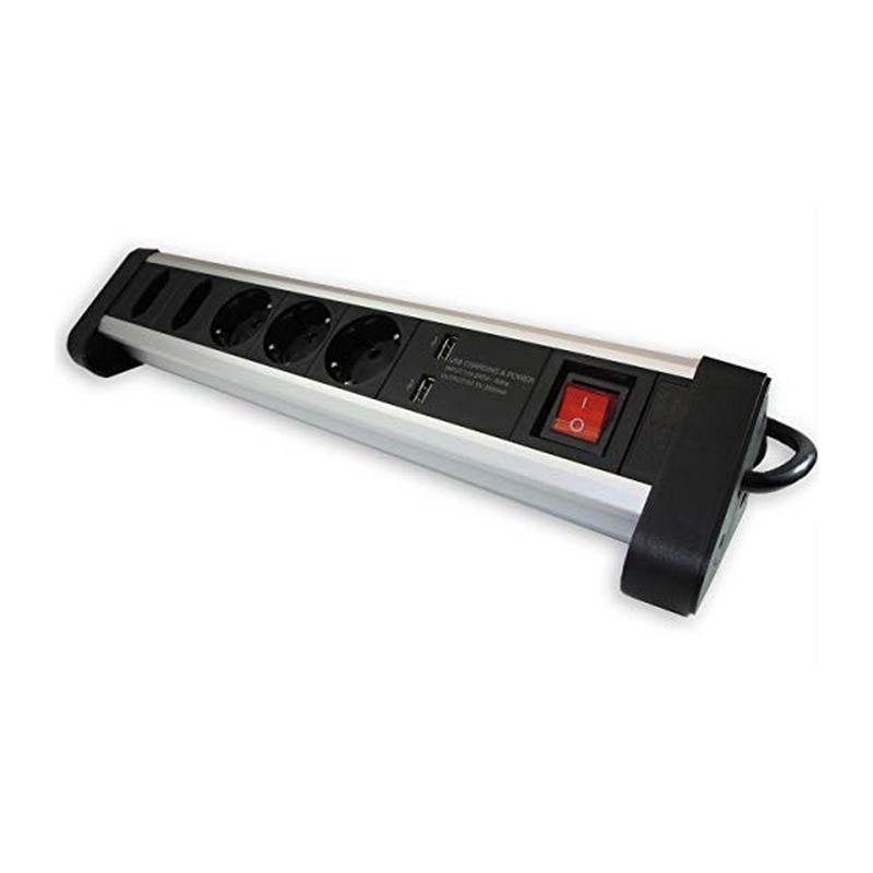 Phasak BN 5356 es una regleta eléctrica de mesa de 3 tomas tipo schuko y 2 tomas de euro, de alta calidad con protección para niños e interruptor. Fabricada en aluminio para otorgar mayor robustez.