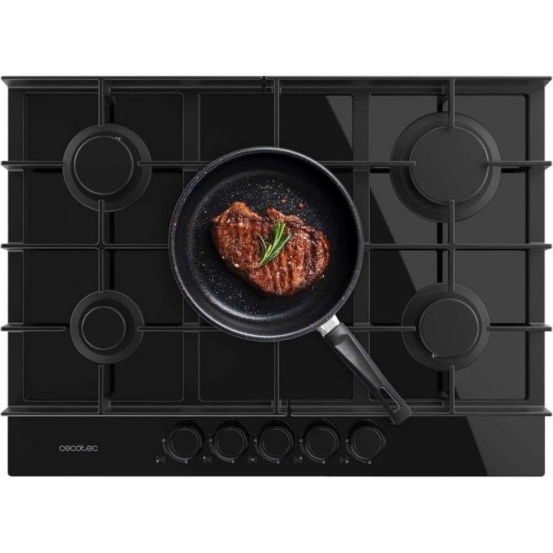 Placa de gas Cecotec Bolero Squad G 5400F 5 fuegos cristal negro WOK hierro fundido
