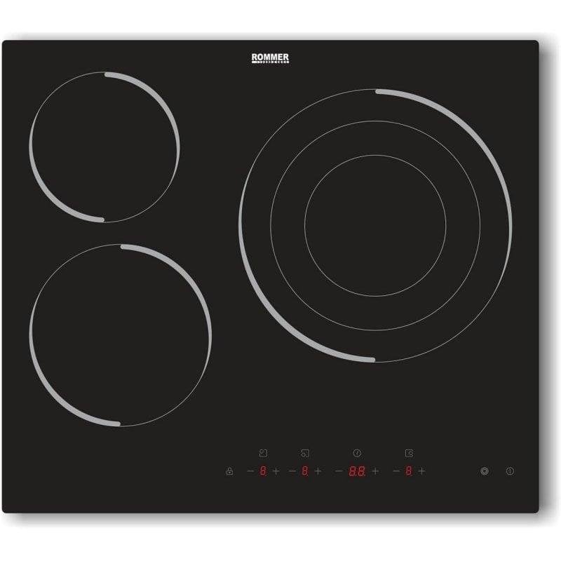 Placa vitrocerámica Rommer VTM-60 3 fuegos 5700W biselada display negro