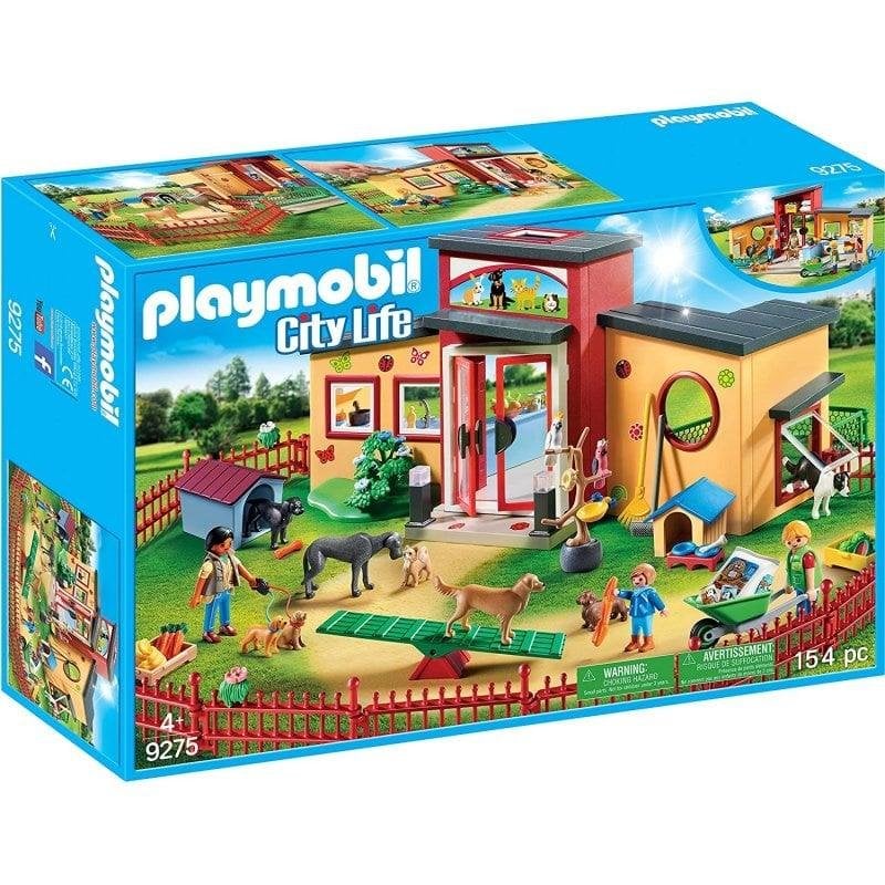 Incluye cuidador, múltiples animales (principalmente perros), vallas, mobiliario y accesorios funcionales, permitiendo personalizar el hotel y simular situaciones profesionales de gestión y cuidado de mascotas.