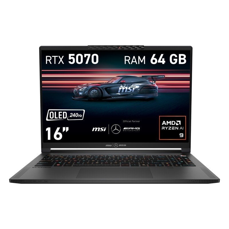 Portátil MSI Stealth A16 Mercedes AMG 16" AMD Ryzen AI 9 370 64GB 2TB SSD RTX 5070 8GB OLED