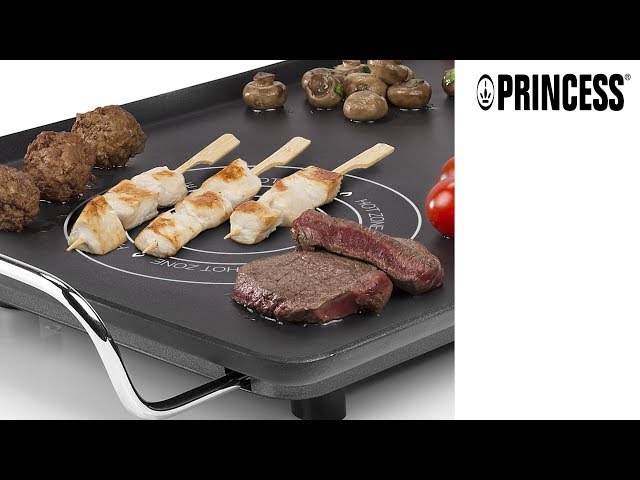 La Princess Table Grill XXL, de tamaño 36 x 60 cm, es perfecta para preparar carne, pescado, hortalizas, crepes e incluso patatas sin usar aceite ni grasas. Ideal para uso como barbacoa, raclette (para fundir queso) o plancha teppanyaki japonesa. Muy útil en la cocina, divertida en la mesa y práctica en el jardín o el balcón. ¡Un asado perfecto sin usar gas ni carbón! ¡Sin aceite ni grasas, un resultado bajo en grasas! La Table Grill XXL tiene una capa antiadherente múltiple que la hace fácil de limpiar. Incluye un termostato de precisión ajustable (hasta 215ºC) con luz indicadora y asas que no queman. Sugerencia: también se puede usar para descongelar. Incluye 5 espátulas de madera.