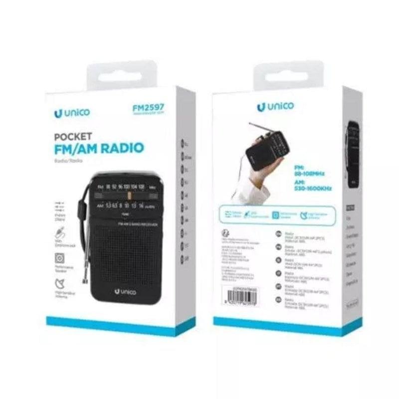 Radio portátil FM/AM Negra con conector 3,5 mm, carcasa ABS y sintonizador analógico
