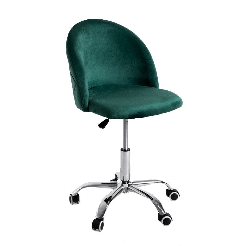 Silla de oficina Vint de Regalos Miguel con acabado en terciopelo verde, ideal para uso doméstico o de oficina.