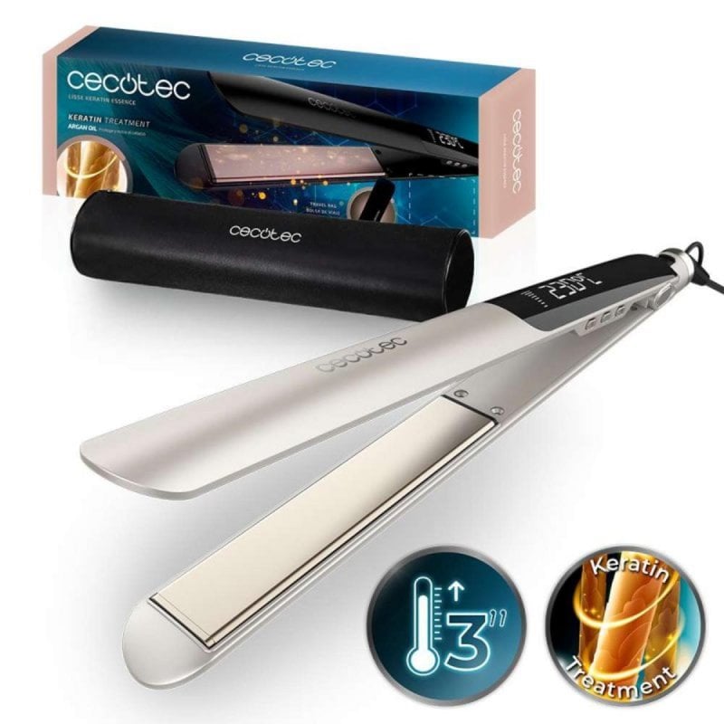 Sí, la tecnología de placas infundidas con queratina y aceite de argán transmite estos activos al cabello, mejorando la suavidad, reduciendo el frizz y aportando brillo, además de proteger la fibra capilar de daños térmicos, algo clave en rutinas profesionales y uso frecuente.